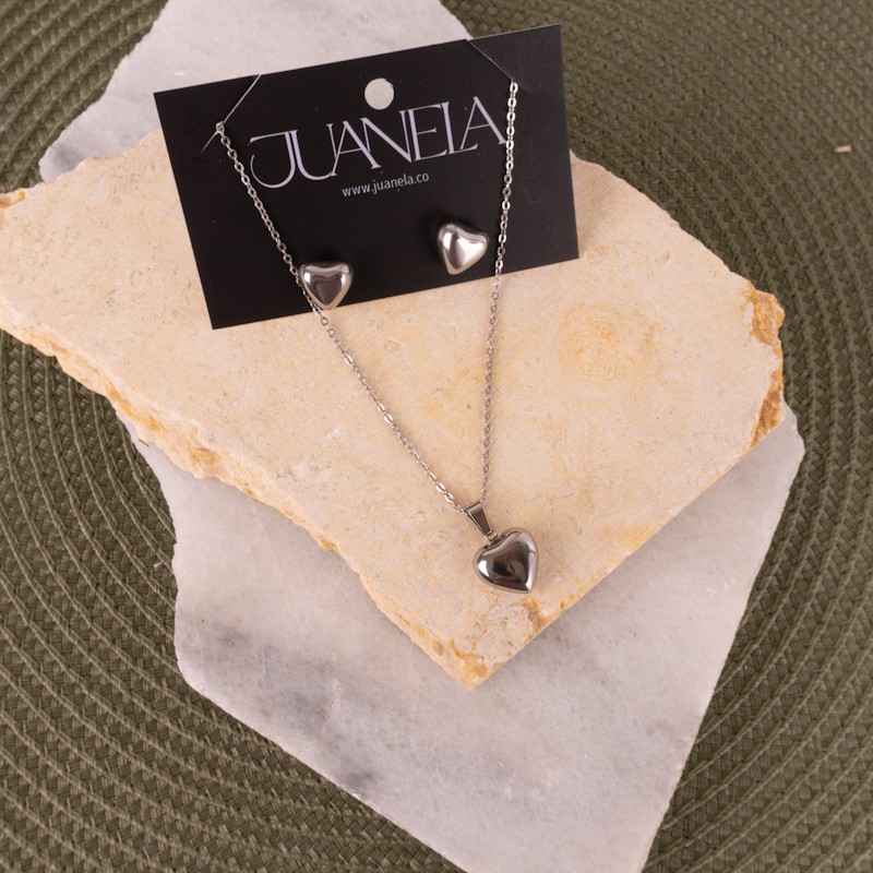 Juego de aretes y collar corazón silver No 917