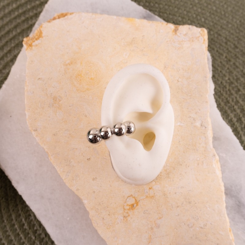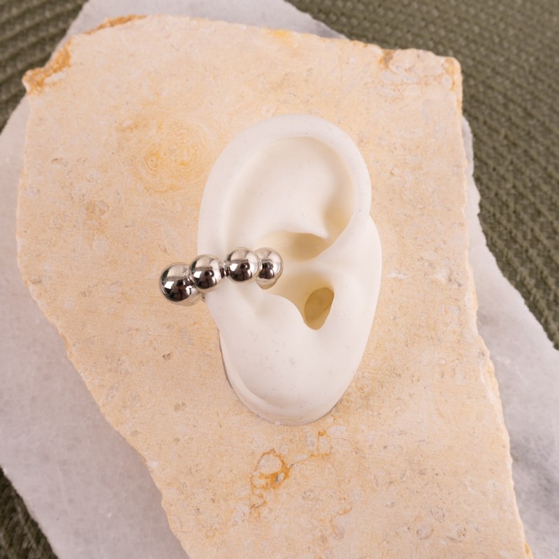 Estos EARCUFF en rodio son la tendencia en la moda actual. Con un diseño meticuloso y materiales de alta calidad, estos accesorios son la elección perfecta para elevar cualquier atuendo y lucir un look verdaderamente elegante.